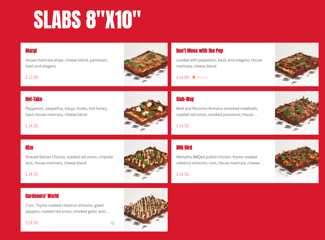 Slab City Pizza, located at Broadway Market, Unit 25 Tooting, London SW17 0RJ, United Kingdom, offers a delightful experience for pizza enthusiasts seeking a unique twist on their favorite dish. The Slab City Pizza Menu stands out for its bold and inventive combinations, focusing on fresh, high-quality ingredients that elevate the pizza experience. Whether you're a fan of classic Margherita or looking for something more adventurous like their signature BBQ Chicken, Slab City has something for everyone.